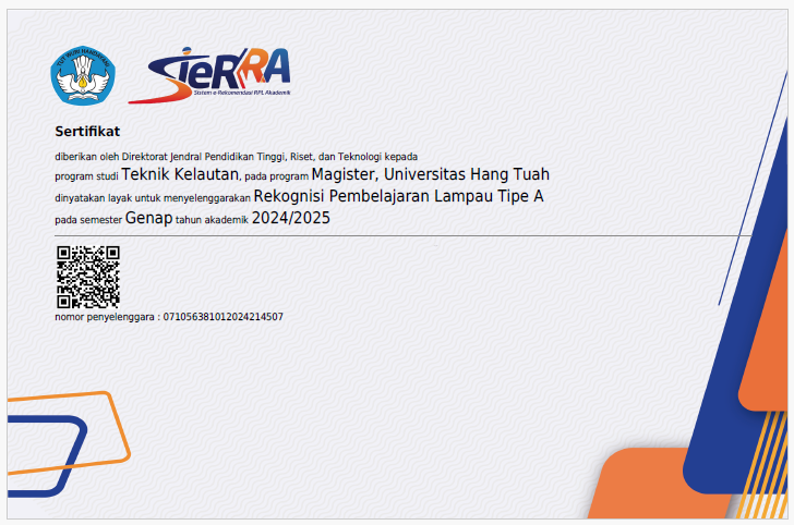 PERINGKAT AKREDITASI UNIVERSITAS HANG TUAH dan MAGISTER TEKNIK KELAUTAN